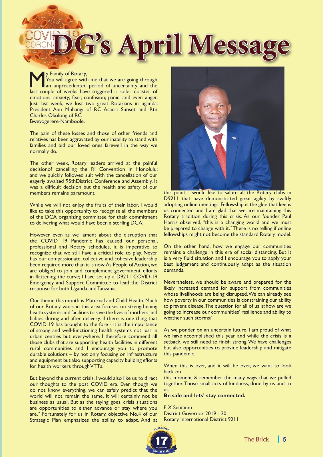 Rotary club of Kajjansi's 17th Charter Night Souvenir Brick Bulletin
